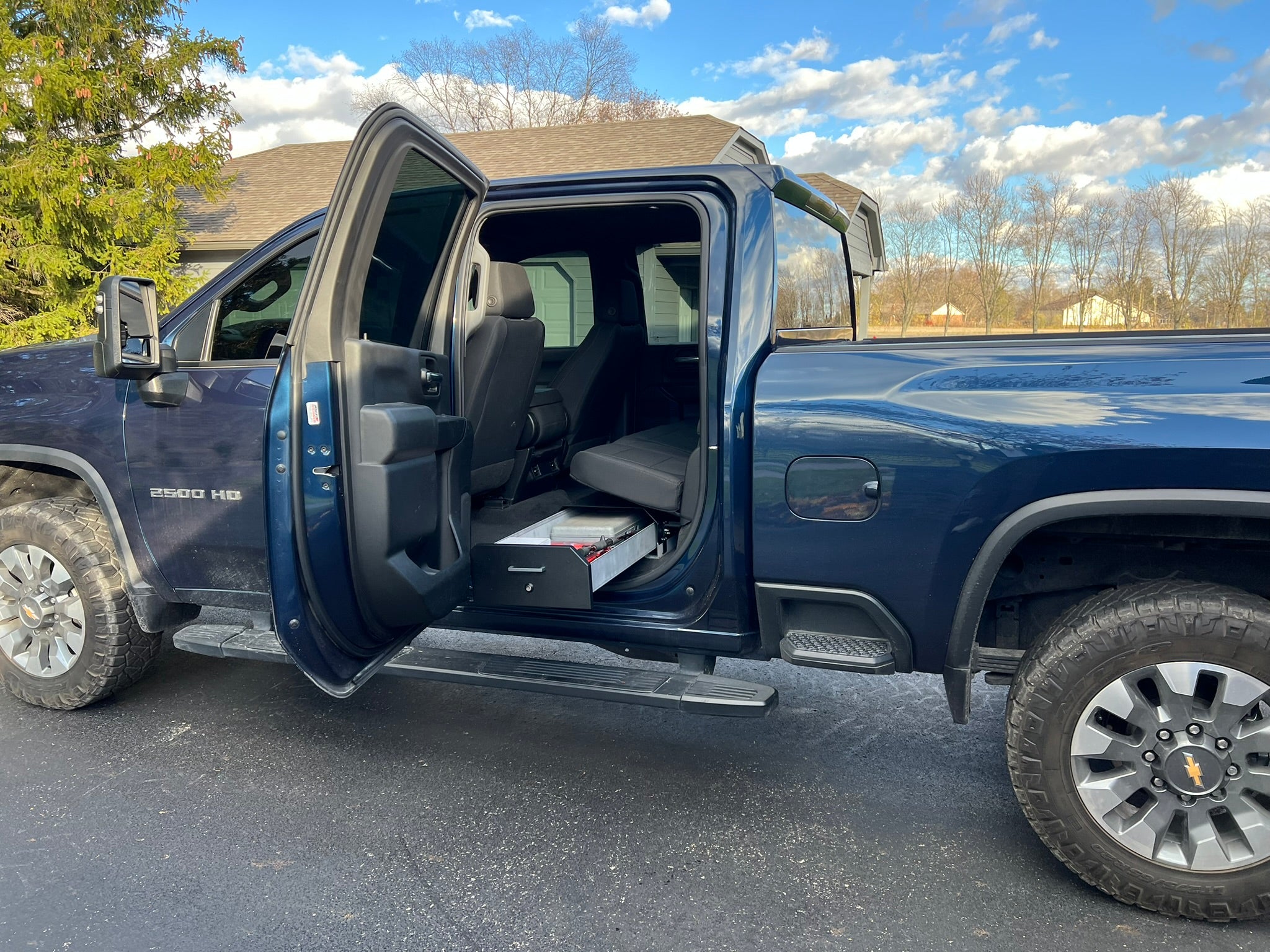 The fact that the drawer slides out the rear driver's side door makes accessing your items and locking things up incredibly convenient, especially in tight spaces. This is a well-thought-out, well-constructed piece of equipment that deserves a full five stars. Highly recommended!